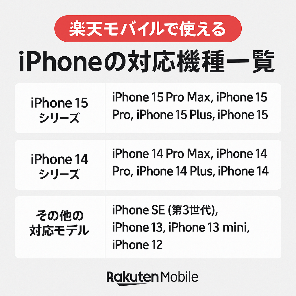 楽天モバイルは格安SIMのイメージが強いですが、実際には最新のiPhoneシリーズにも幅広く対応しています。