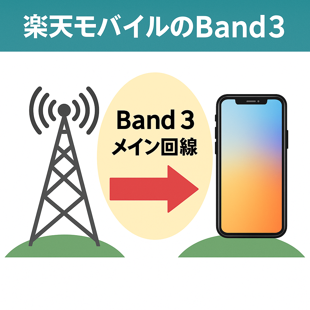 Band3とは?・・・楽天モバイルのBand 3(1.7GHz帯)は、同社が利用している楽天回線の主要周波数帯です。
