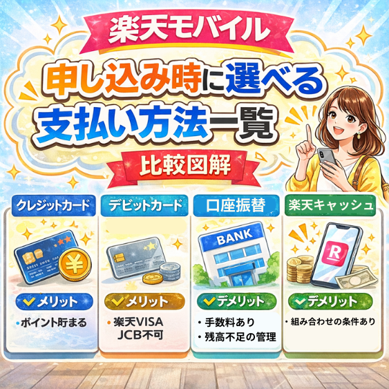 まず前提として、楽天モバイルは口座振替という支払い方法を案内しています。