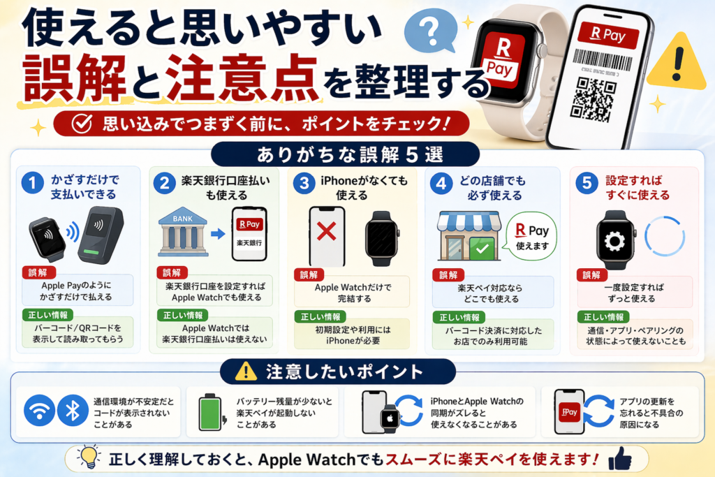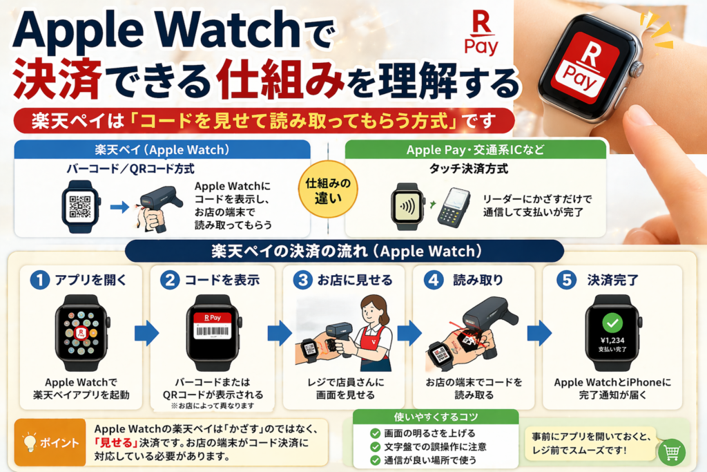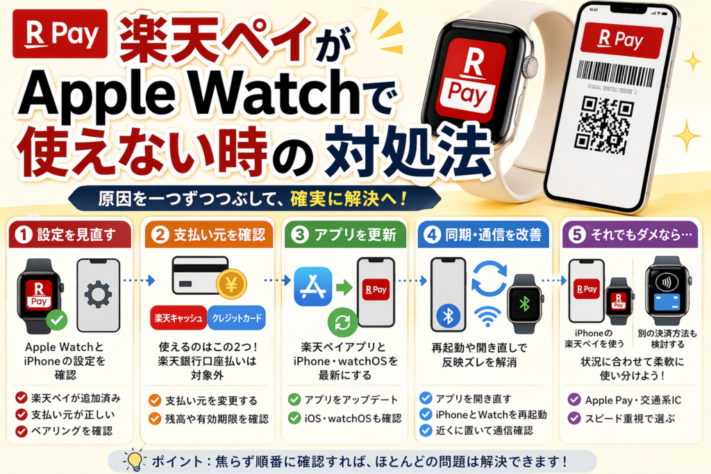 楽天ペイとApple Watchの関係がすっきり整理できて、自分が今どこでつまずいているのかを落ち着いて見つけやすくなります。
