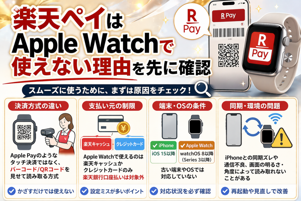 - 「楽天ペイはApple Watchで使えない」という前提は今の状況とはズレています